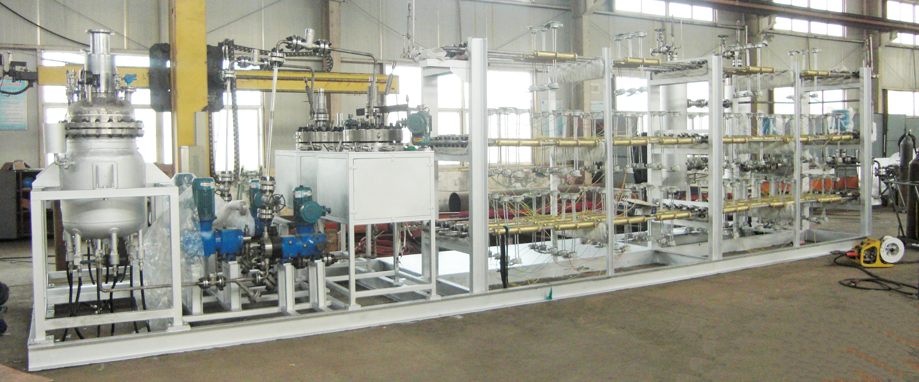加氫反應(yīng)分為吸熱反應(yīng)和放熱反應(yīng),有些加氫反應(yīng)在反應(yīng)過(guò)程中會(huì)釋放大量的熱能。為了生產(chǎn)安全,并及時(shí)降低釜內(nèi)溫度,有些工藝要求釜內(nèi)配大面積的冷卻盤(pán)管。此時(shí)單層冷卻盤(pán)管無(wú)法滿足工藝要求,需要雙層或更多層盤(pán)管有效及時(shí)降溫。正威機(jī)械生產(chǎn)的6層盤(pán)管內(nèi)配吸氫攪拌槳,加…